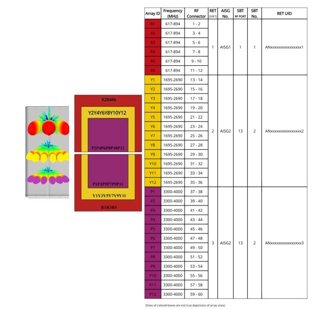 - One RET and one SBT for LB , Two RET and One SBT Mid and High band for remote optimization and RET control