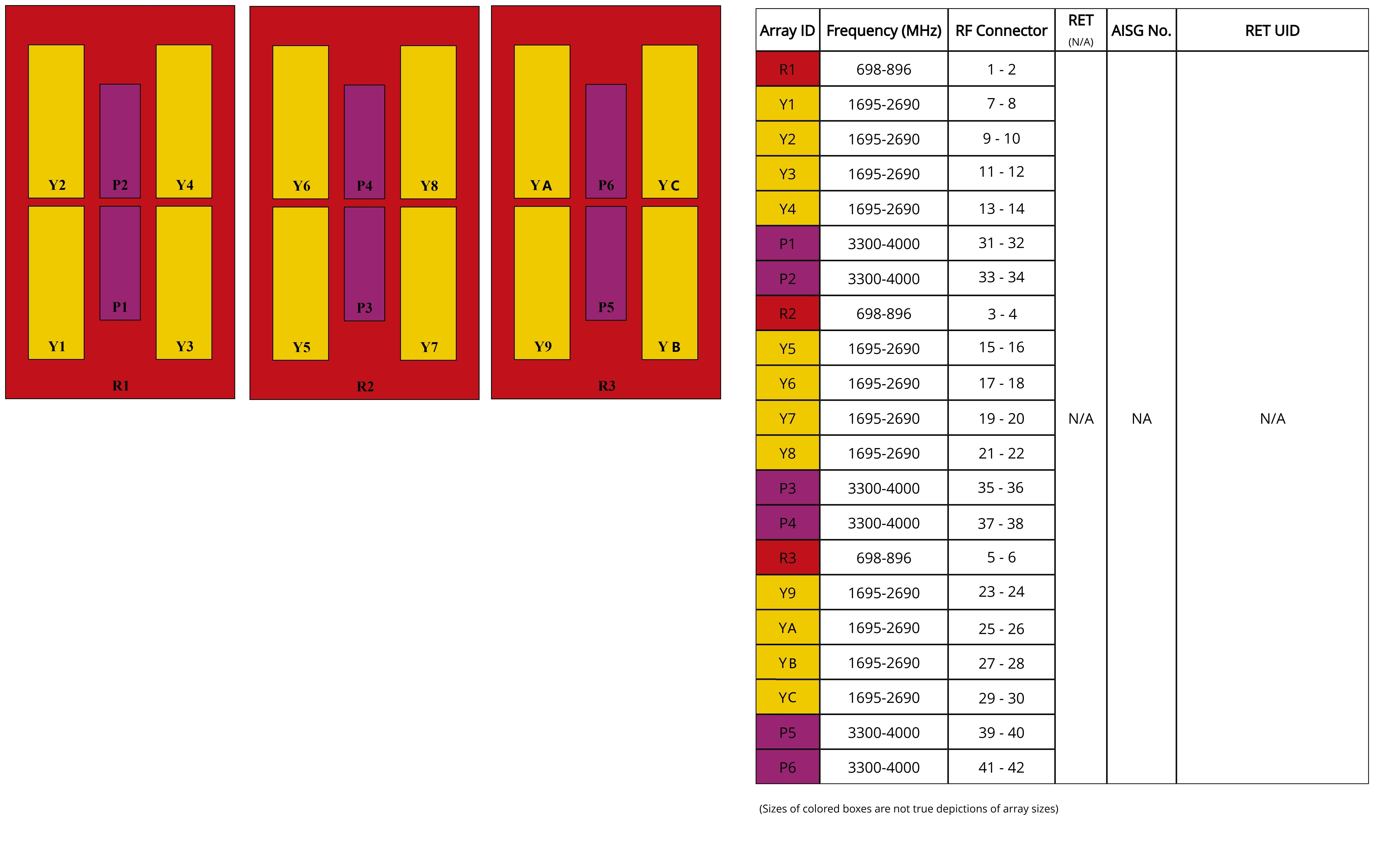 | RF Port | 1-6 | 7-30 | 7-30 | 7-30 | 31-42 |