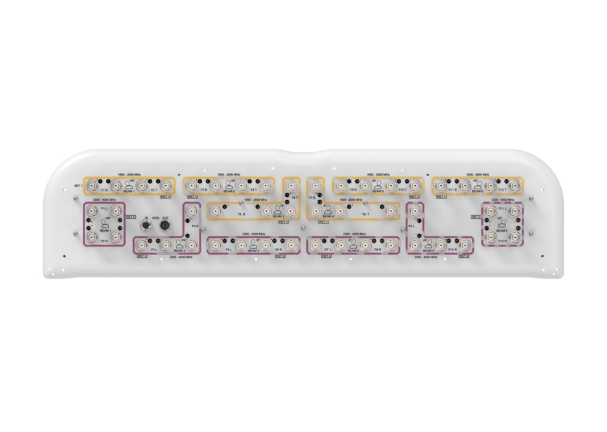 48 Port multibeam ultra-high capacity antenna, 6 beams for 1695-2690 MHz, 6 beams for 3300-4000 MHz, 4 ports for each beam,1 RET per band