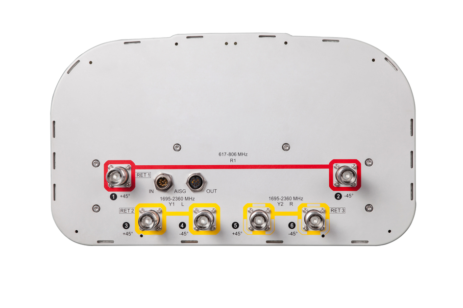 6-port sector antenna, 2x 617-806 and 4x 1695–2360 MHz, 65° HPBW, 3x RET, 600 MHz-Ready Antenna Technology