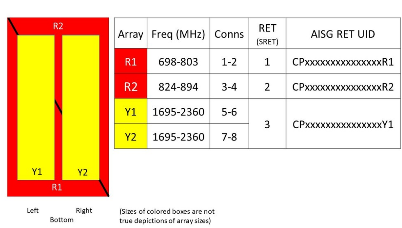 - One RET for 700MHz, one RET for 850MHz, and one RET for both high bands to ensure same tilt level for 4x Rx or 4x MIMO