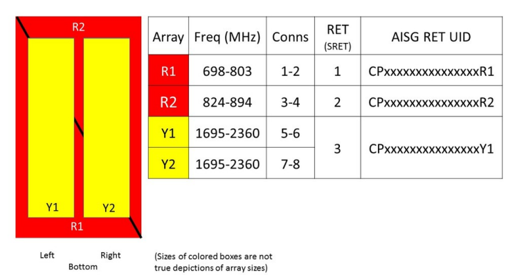 - One RET for 700MHz, one RET for 850MHz, and one RET for both high bands to ensure same tilt level for 4x Rx or 4x MIMO