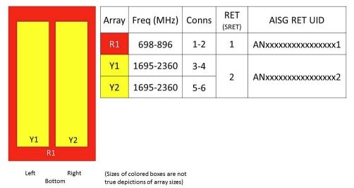 - One LB RET and one HB RET. Both high bands are controlled by one RET to ensure same tilt level for 4x Rx or 4x MIMO