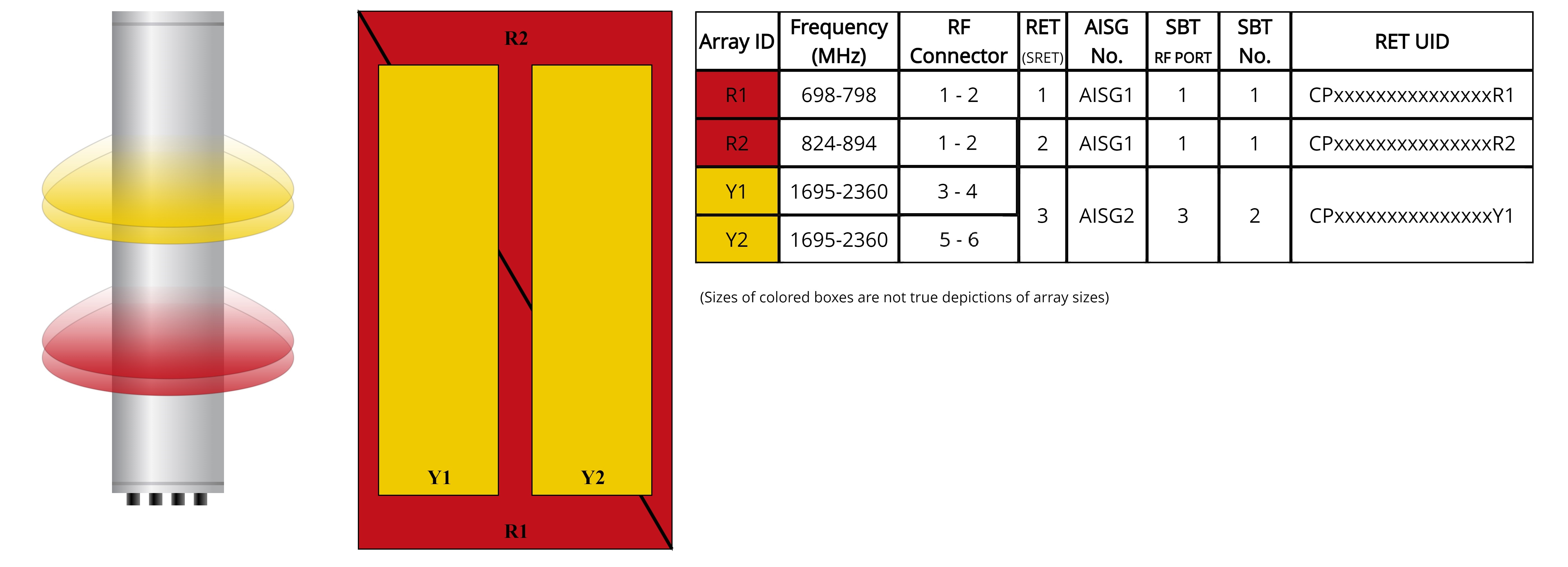 - Internal SBTs allow remote RET control from the radio over the RF jumper cable