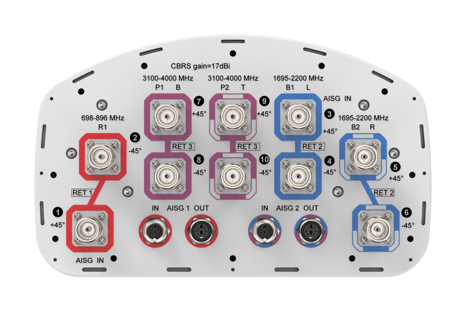 - Internal SBT on low and mid band allow remote RET control from the radio over the RF jumper cable