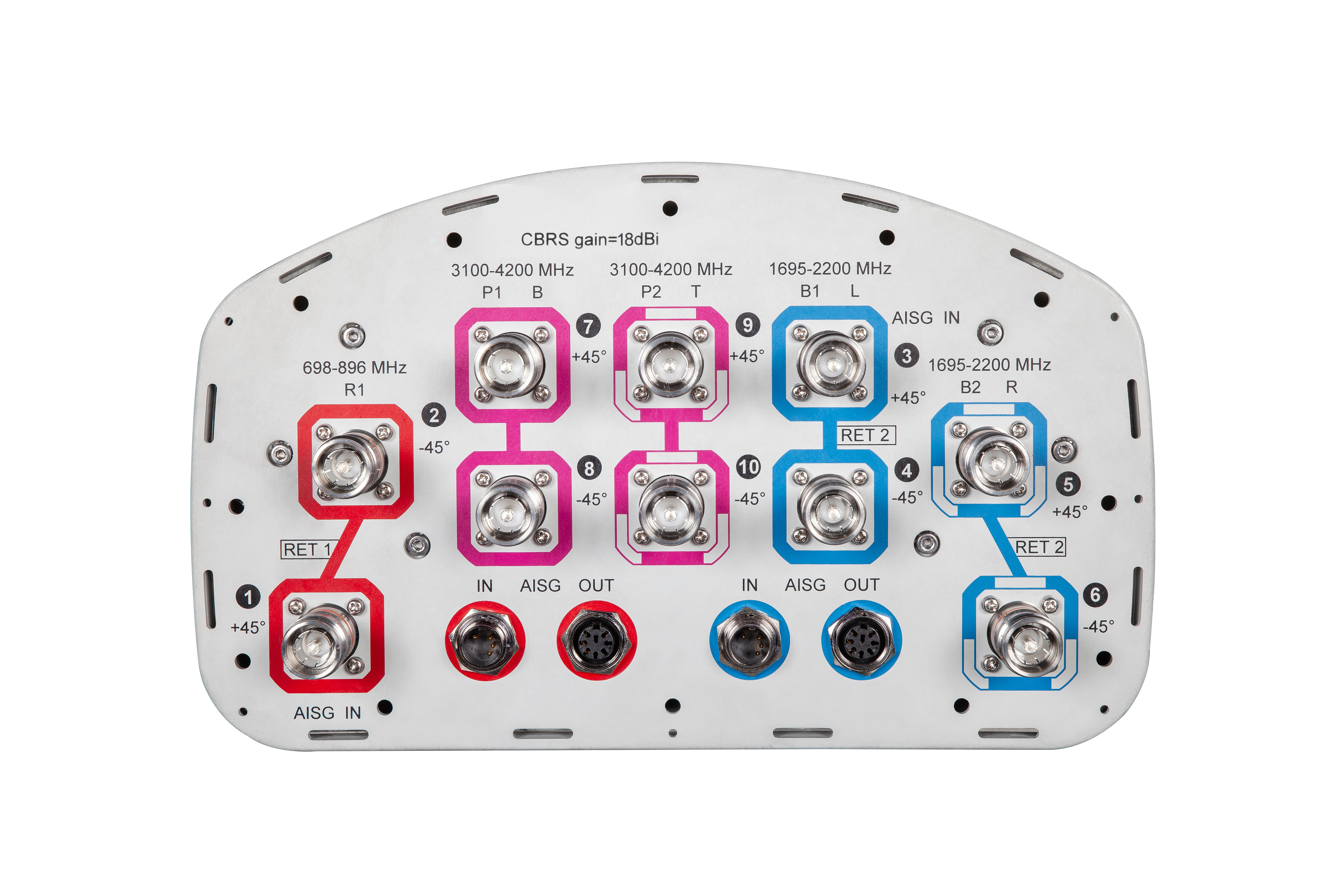 • One LB RET and one HB RET. Both high bands are controlled by one RET to ensure same tilt level for 4x MIMO