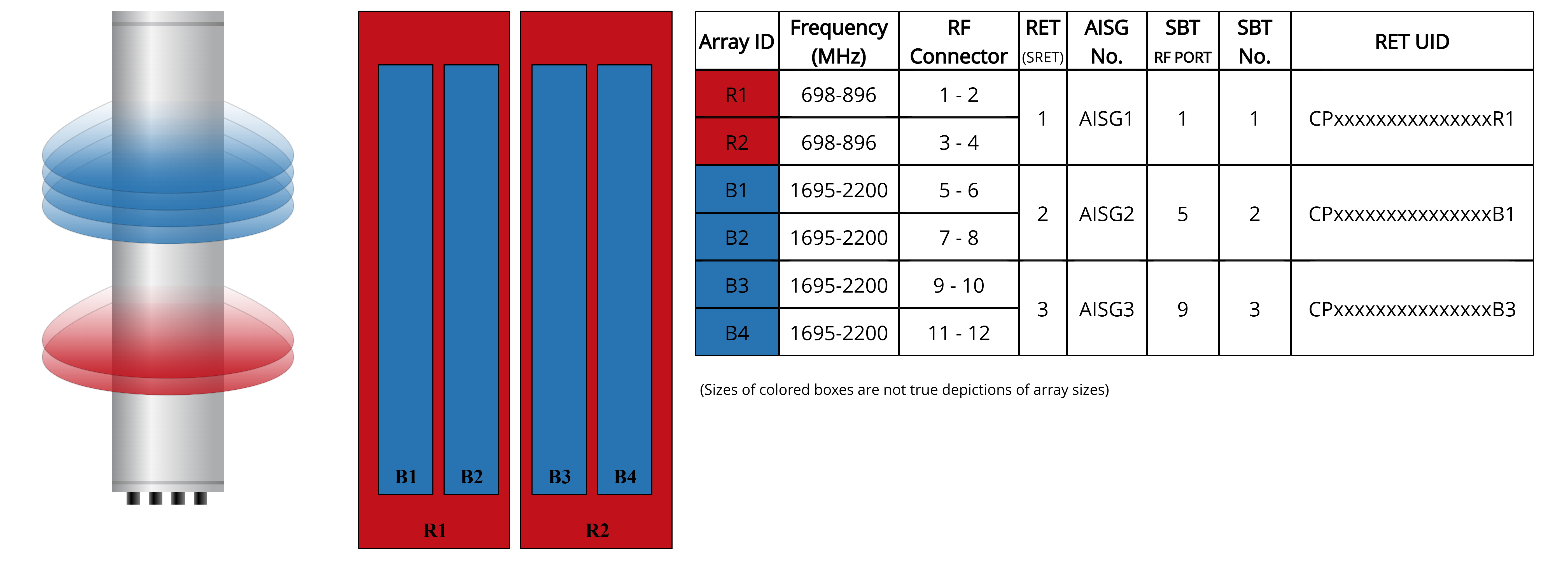 | Internal RET | Low band (1) | Mid band (2) |