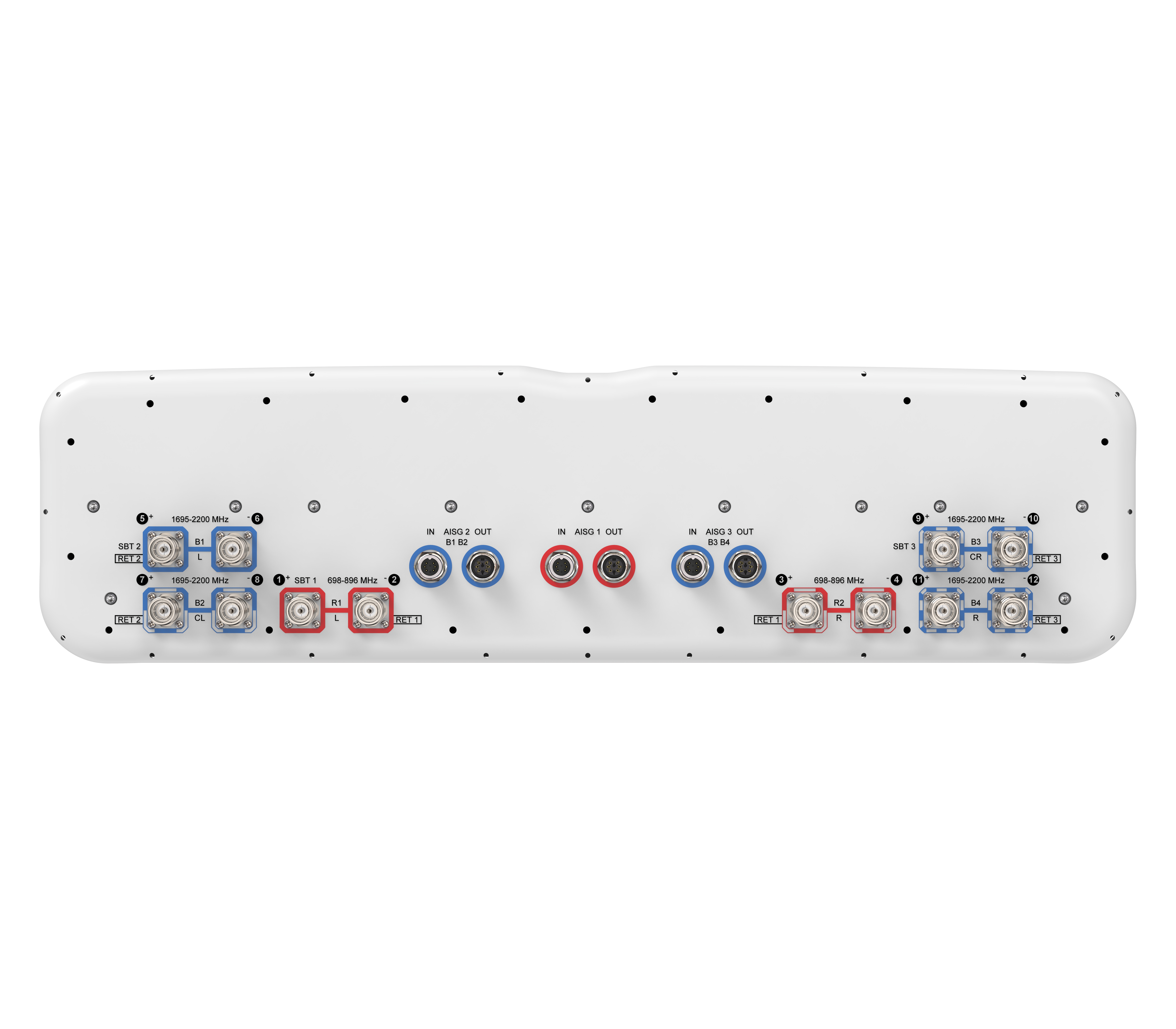 - Internal SBT on low and mid band allow remote RET control from the radio over the RF jumper cable