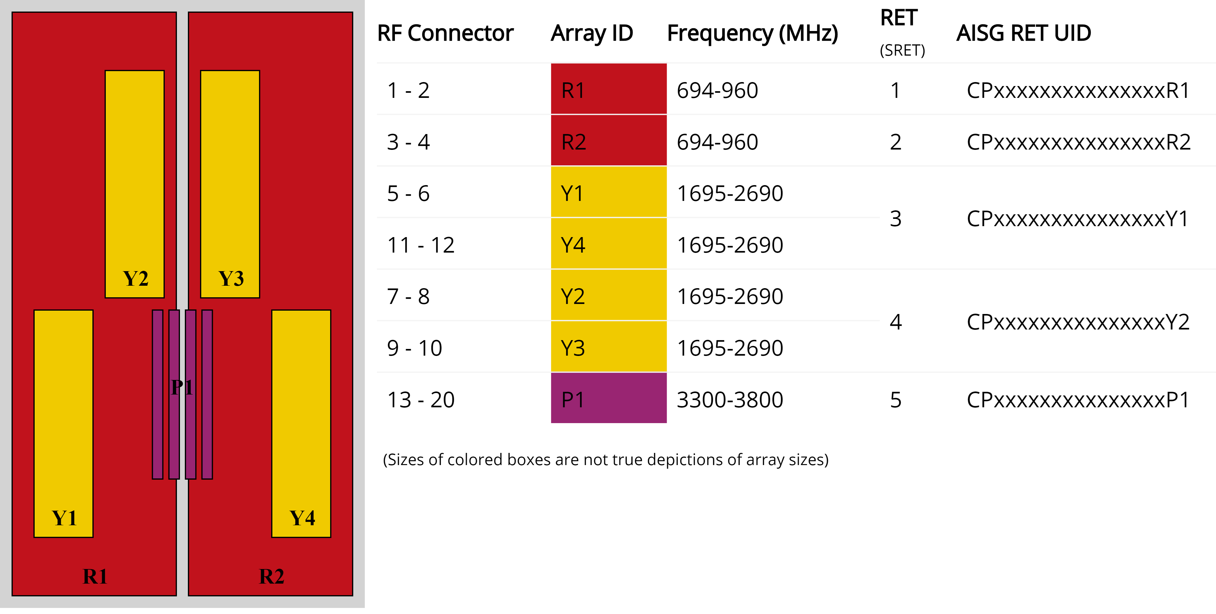 | Internal RET | High band (1) | Low band (2) | Mid band (2) |