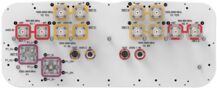 - Cluster connectors for the beam-forming array, including eight RF ports plus one calibration port