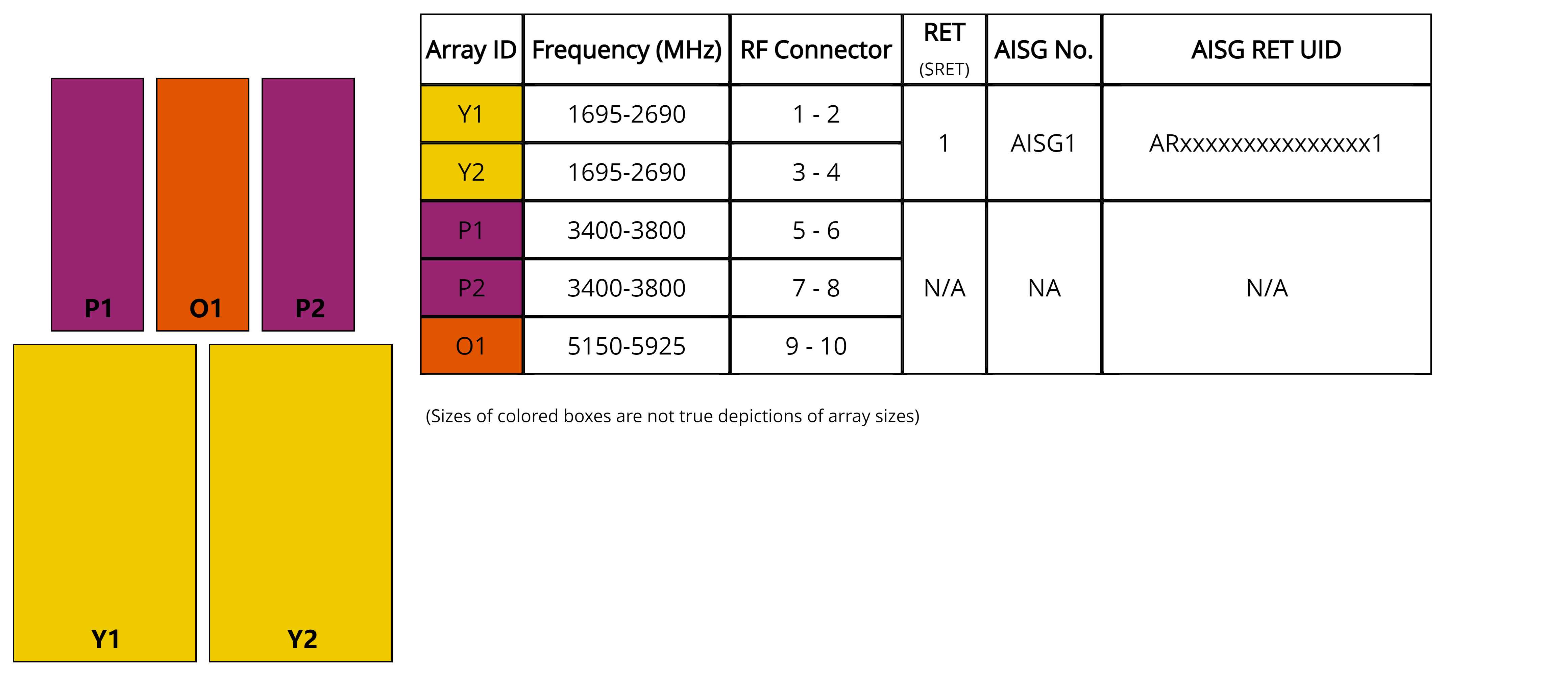 | Operating Frequency Band | 1695 – 2690 MHz | 3400 – 3800 MHz | 5150 – 5925 MHz |
