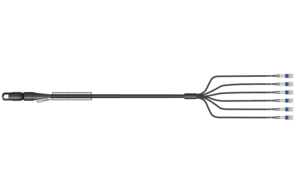 HELIAX® Discrete Fiber Trunk, outdoor rated, single mode fiber cable assembly, End 1: OptiTip Compaitble connector (Jack) and End 2: Clipped Duplex LC. End 1 OptiTip Compaitble connector (Jack) connector to OptiTip Compaitble connector Jumper; End 2 Clipped LC with 5.0mm branch tube for WDM entry sealing and cable divider designed to maintain retention force, clipped LC allow to separate to Duplex LC and terminated on