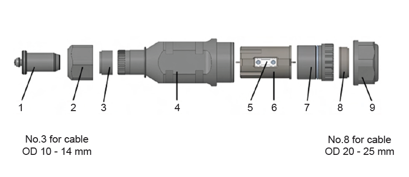 | Cable Outer Diameter | Input end: 20–25 mm | Output end: 10–14 mm |