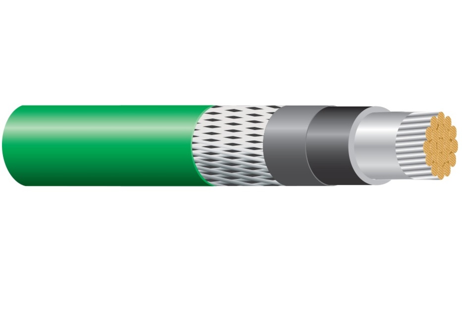 HELIAX® Single Conductor Power Cable, 8AWG Conductor, LSZH, L4, Green Jacket, Cotton Braid over Insulation, Telcordia GR-347-CORE, IEC including 60674 and 60332, 105 degrees C Dry, 60 degrees C Wet