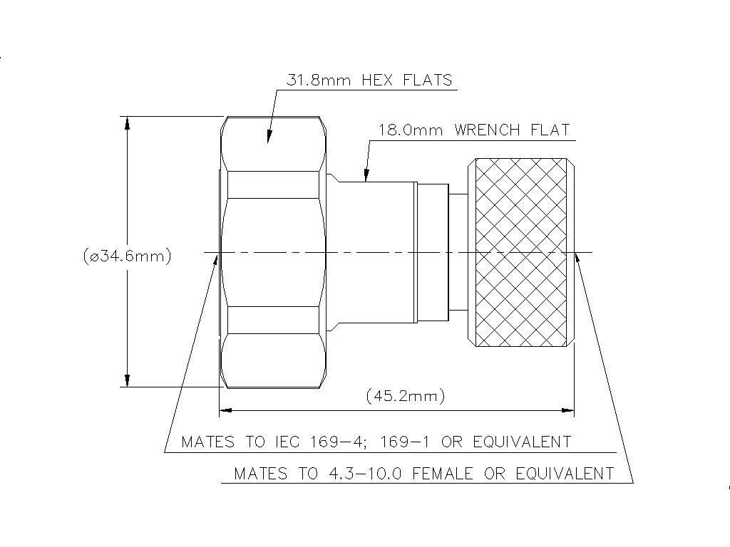 7-16 DIN Male to 4.3-10 Male (Hand torque) Low-PIM Adapter
