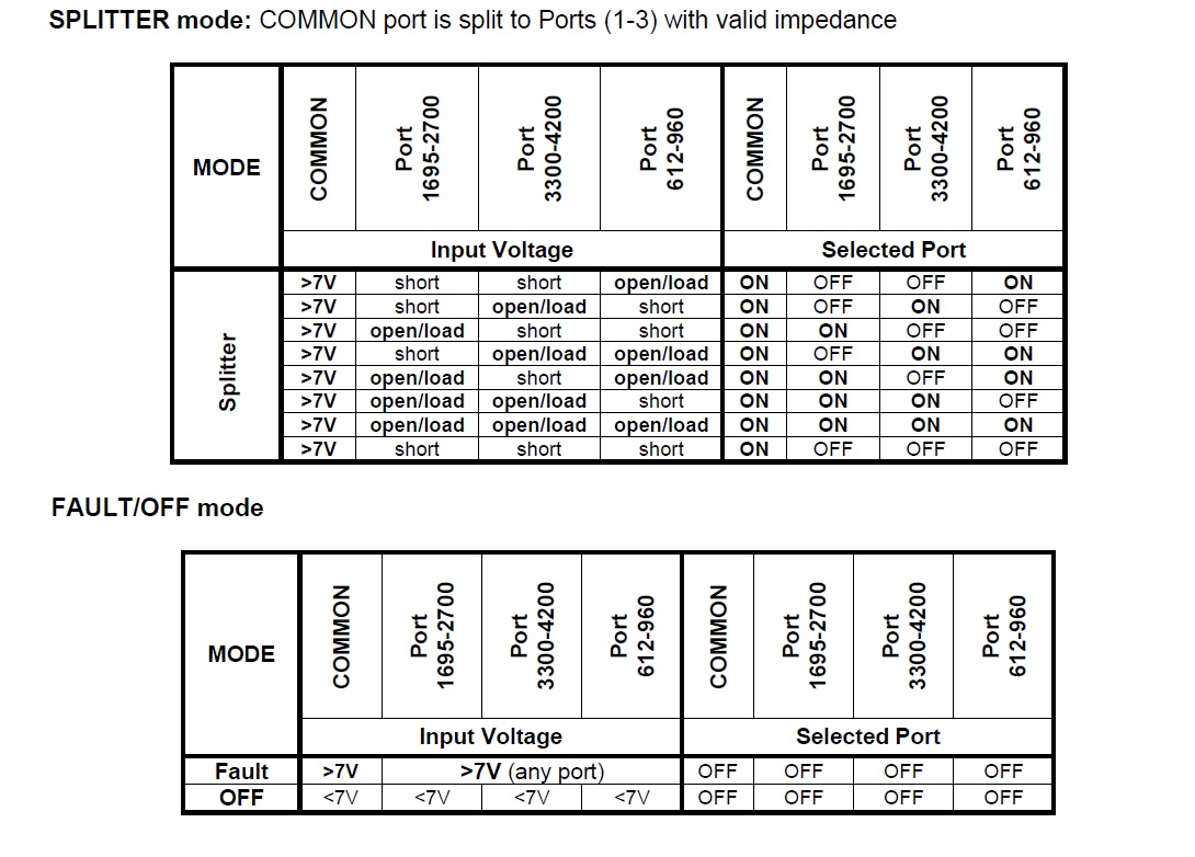 | Port Designation | 617-960 | 1695-2700 | 3300-4200 |