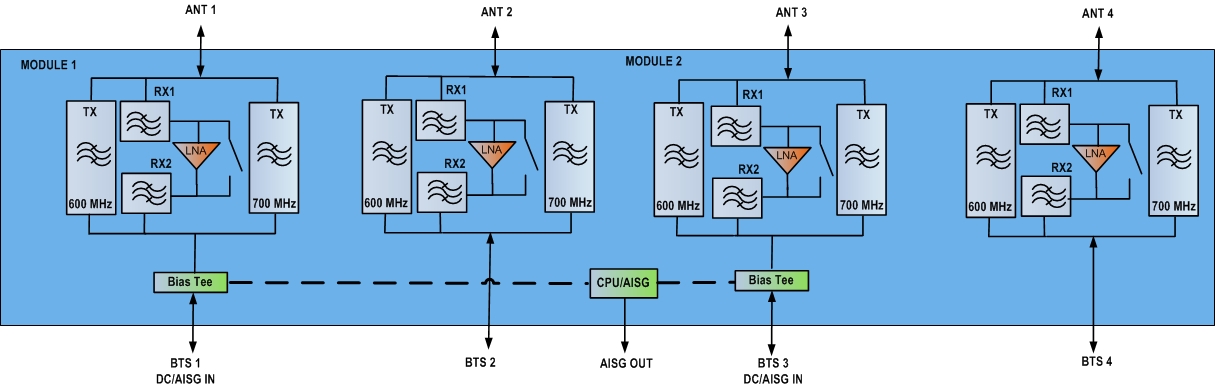 Quad-pack Tower Mounted Amplifier 600/700 MHz,4.3-10