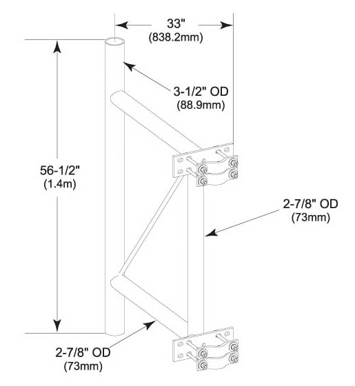 Pipe Frame Stand-Off Bracket, 36 in, for 4 in to 8 in OD legs